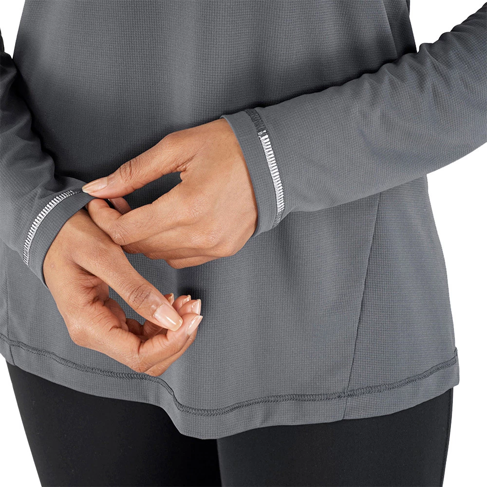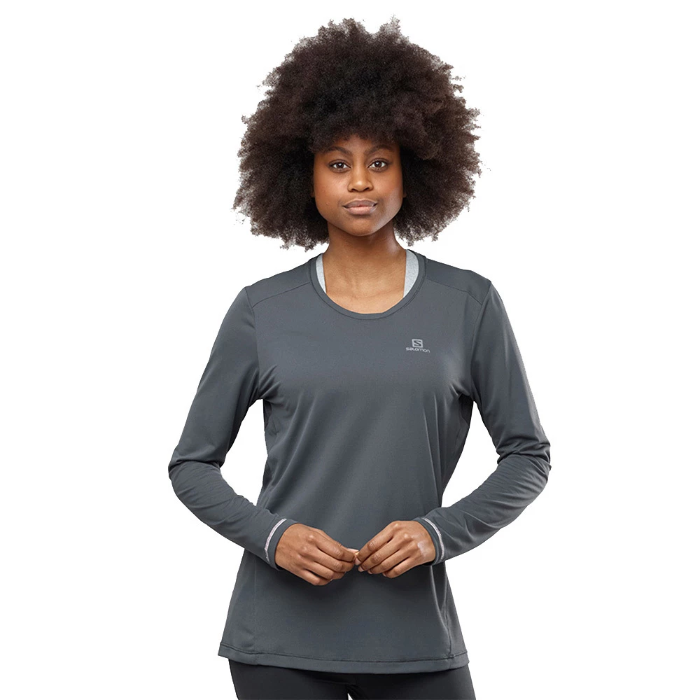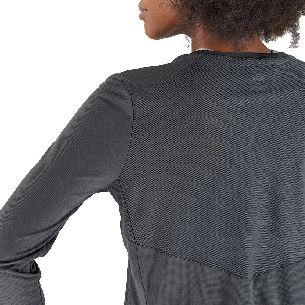 For those days you decide to run longer and go farther, reach for the women’s AGILE LS TEE. This stylish top uses two fabrics that together keep you cool, dry and feel soft against your skin. Long sleeves offer added protection during altitude gains, and the fit is flattering right down to the curved hem.